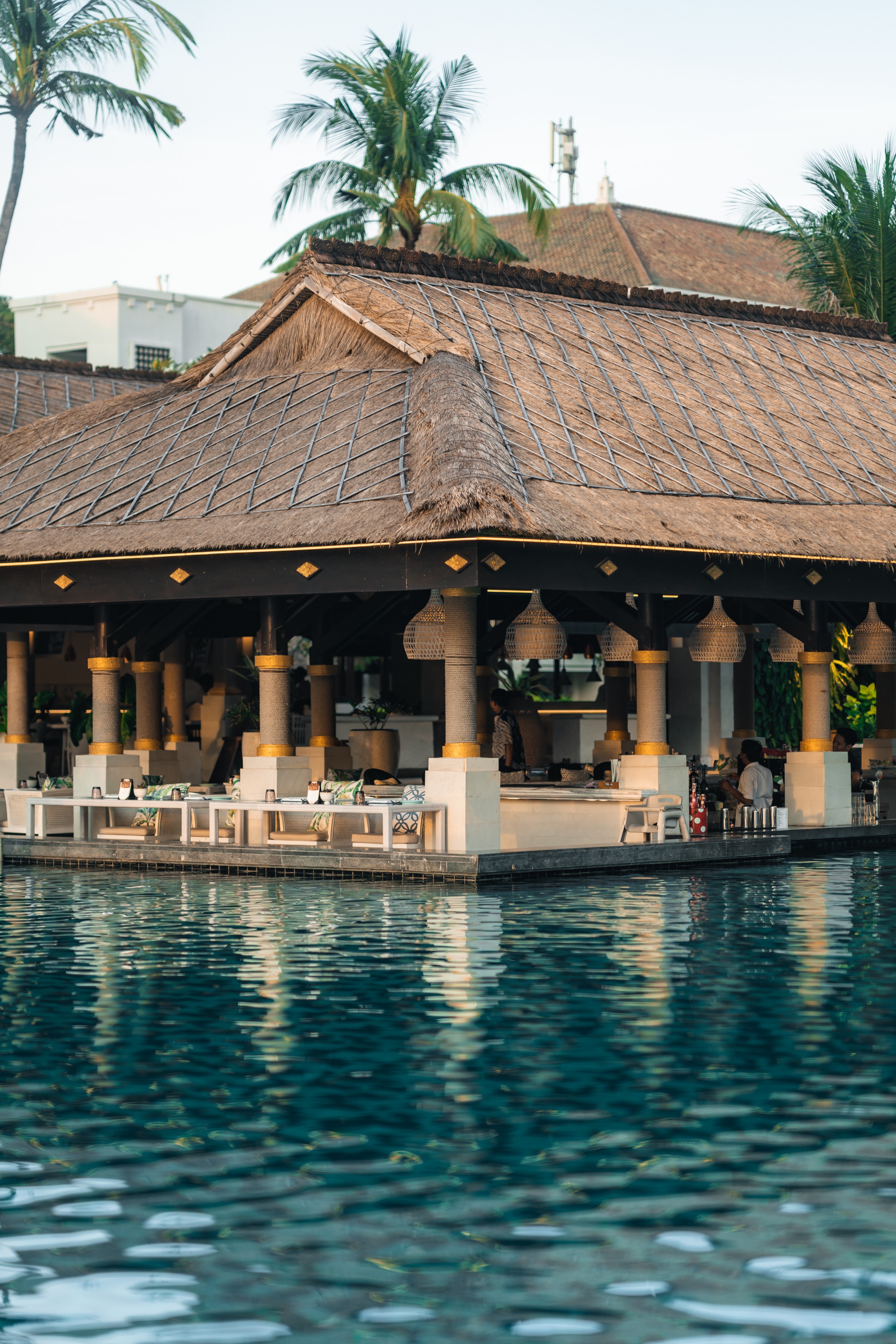 Рестораны a la carte/шведский стол: Bella Cucia (платно): итальянская кухня, работает с 18:30-22:30. <br /> KO (платно): японская кухня, работает с 18:00-22:30. <br /> Jimbaran Gardens (платно): работает с 06:30-23:00.<br /> В рестораны необходима предварительная резервация. Бар: Sunset Beach Bar & Grill Расписание работы основного ресторана: Taman Gita Система питания: BB, HB, FB |